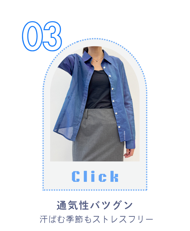 汗ばむ季節も肌にまとわりつかず、快適な着心地をキープします。