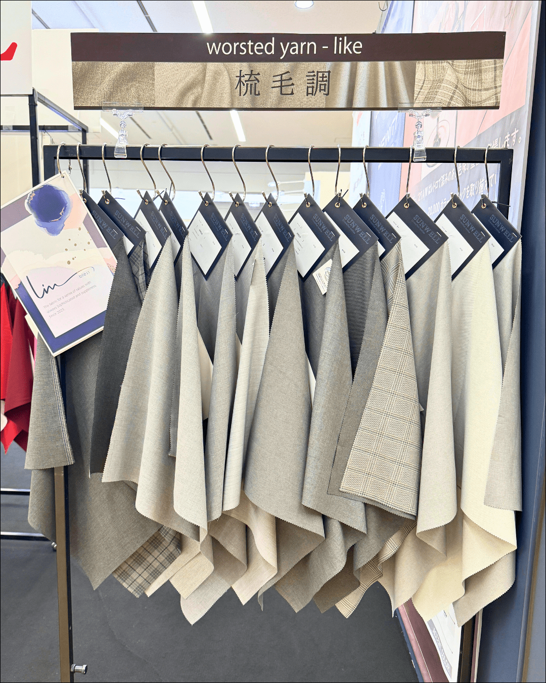 LANATEC、梳毛調リンブレス、フィブリル起毛 など、カテゴリーごとに整理した秋冬向けテキスタイルシリーズを展示しました。
